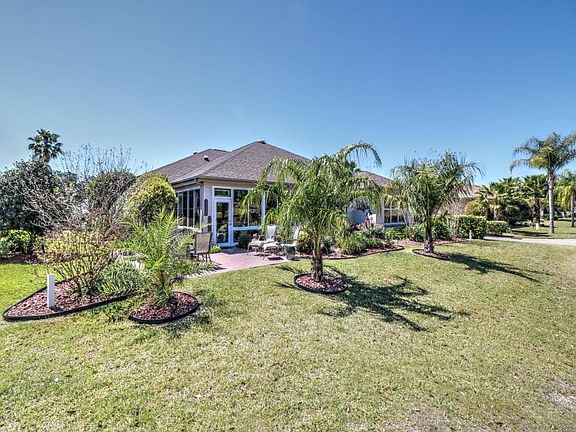 Spacious home with expansive golf course views. Lushly landscaped front and back with unique stonework along the front elevation that is complimented by a cobblestone driveway. Step through leaded-glass doors to an open design concept with a split bedroom floor plan. Living space includes a 24.1 X 16.6 fully finished lanai that is temperature controlled and glass enclosed. A complete new air and heating system (16 Seer) was set up a year ago at a cost of $11,000.00 An entire new roof was installed in September 2014 at a cost of $14,000.00 The home also boasts of Solartubes that enhance the natural light, a radiant barrier in its attic and garage. Warm but neutral walls and floors reflect the meticulous care taken by its only owners.