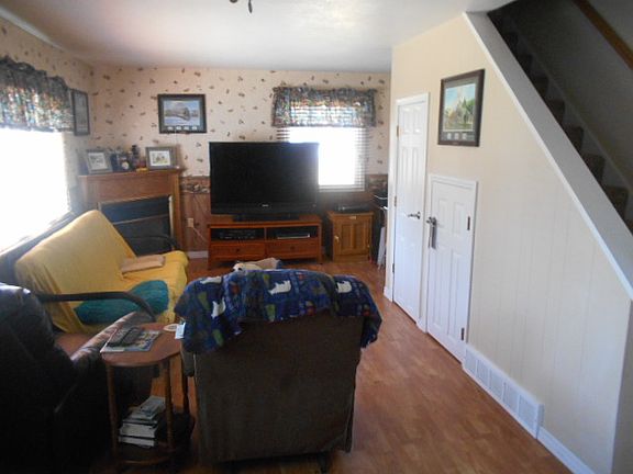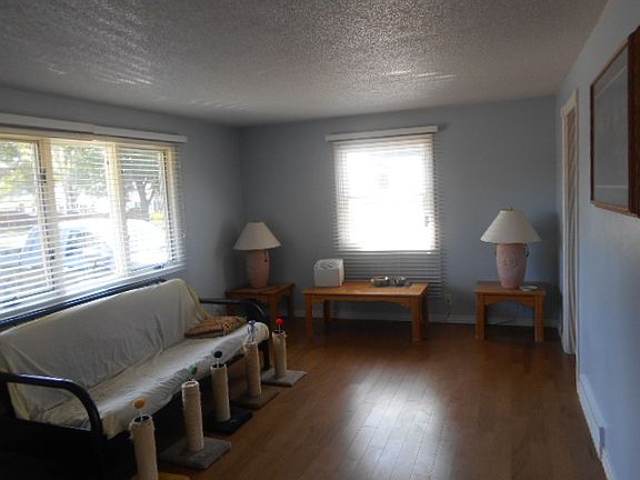 Ranch style house with raised addition, three bedrooms with large closets including a cedar lined walk-in closet. Two bathrooms, one with a new tub and shower. Stove and refrigerator will stay in the kitchen, living room, dining room, large family room two additional bedrooms in finished basement. Hardwood floors and laminate flooring, rec. room in basement has copper tiles on ceiling. Detached two car garage, fenced yard, underground sprinkler system.