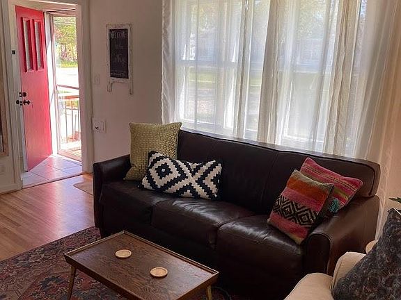 This is an ADORABLE fully furnished home with a full kitchen featuring a beautiful design with lovely cabinets, butcherblock countertops, a gas stove, microwave, full refrigerator and dishwasher. Right off of the kitchen you will enjoy a quaint dining area with a table and chairs. The stunning updated bath features a contemporary design with a tiled walk-in shower and wood paneled ceiling. Enjoy the spacious living room's gorgeous hardwood floors, large south facing windows with ample natural light, a dedicated work space, TV, and comfortable furniture ready for you to relax. The bedroom has hardwood floors, a closet and a full sized dresser for storage.