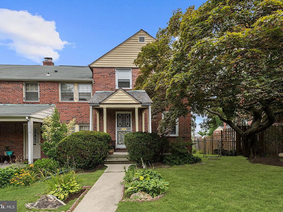 Amazing opportunity to own a 3 bedroom end of group row home with original features throughout! Arrive in the living room on gorgeous hardwood floors and built ins before stepping into the formal dining room perfect for hosting festive gatherings. The eat-in kitchen extends a modern ceramic tile floor while boasting a timeless, enamel cast iron drainboard sink and vintage cabinets with a nod to a bygone era plus access to the inviting deck to enjoy warm summer breezes. Ascend to the upper level to the primary bedroom in which the rich hardwood floors continue their beauty. Two additional bedrooms and Art Deco inspired full bath complete the sleeping quarters. Possibilities are endless in the lower level recreation room with plush carpet, powder room and generously sized laundry room with walk out to the spacious rear lawn with ample space to let your inner green thumb shine by growing fresh vegetables, herbs or beautiful flowers! Parking is a breeze with a detached one car garage and plenty of street parking. Being sold AS IS. So close to Morgan State University and the new Northwood Commons featuring 100,000 square feet of new retail and dining, this home is just waiting for your creative touches! Major commuter routes include I-95, I-695, I-83 and US-1