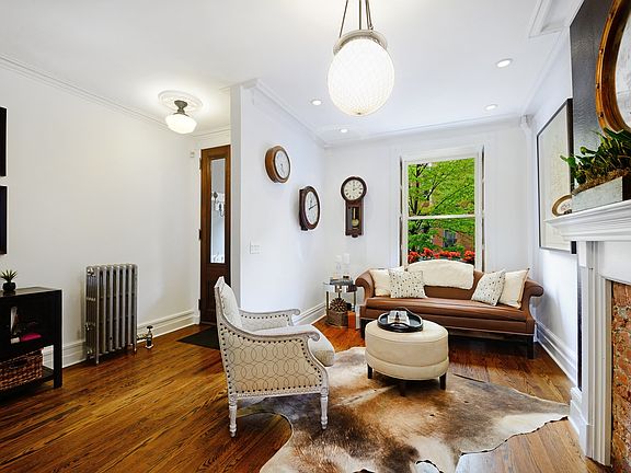 This completely restored and renovated four-story single-family brownstone townhome is located on one of uptown Hoboken's most treasured tree-lined streets. This home offers four bedrooms and two and one half bathrooms over four levels. Restored original features include the handsome brick and brownstone facade, double entry doors, turn-of-the-century staircase with mahogany banister, original pocket shutters, marble fireplace mantle and original plaster moldings and medallions. In 2013 the garden level was completely gut renovated and features a large family room, a laundry area with high capacity Maytag washer dryer, a generous pantry, plenty of storage and all new mechanicals. The elegant parlor level offers a wide-open living space with a large dining area, a half bath, original plaster molding, hardwood floors, recessed lighting and a decorative fireplace mantel. The kitchen spans the full width of the back of the home and offers full height cabinetry, Viking stove, a center island with wine fridge and black granite countertop. The large windows in the back of the house provide abundant light and the kitchen has direct access to the garden with concrete pavers, planting bed and barbecue with dedicated gas line. The second floor has a beautiful family room with built-in cabinetry and original pocket doors, a recently renovated bathroom with floor to ceiling oversized subway tiles and large frameless glass shower and another full size bedroom. The top floor has a large master bedroom, two smaller bedrooms and another bathroom with double vanity and marble countertop. Conveniently located near Hoboken's 14th Street NY Waterway Ferry and one block from Washington Street's boutique shopping, restaurants and the NJ Transit bus route for access to Manhattan's Port Authority bus terminal in approximately fifteen minutes.
