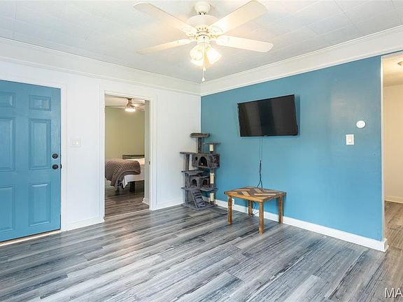 Charming Cape Cod style bungalow offers convenient DeSoto location (walkable to shops & restaurants along Main Street), move-in ready condition, and most importantly, affordability (have you seen cheaper taxes?? Only $673!!).  The impressive curb appeal evokes small town America vibes and captivates with a covered front porch.  The all-main-level-living includes two bedrooms, an open family room offering an abundance of natural light & plenty of options for furniture placement, a full updated bath with shiplap accents & a tub/shower combo, an eat-in kitchen with gas stove, dishwasher, backsplash & new sink/faucet, and finally, a laundry closet!   Completing the interior is sleek laminate flooring throughout, crown molding, and tasteful paint colors.  A large flat backyard with alley access showcases a deck, patio & partial fencing--ideal for late summer entertaining-- while the oversized one-car garage with electric is perfect for a workshop, storing the toys, or converting to a man cave hangout space!  A dry basement and new water heater completes this gem!