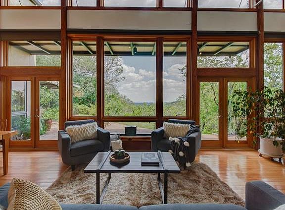 One of a kind architectural masterpiece designed by Austin's own Tim Cuppett w/ expansive stunning views of downtown on heavily wooded 2 ac lot. The entrance is a 2 story "cube" of glass with a "store front" front door; Bright open floorplan w/ custom lighting; Large kitchen with bar that opens to living area taking advantage of the 2 story wall of windows facing Austin; Energy specialist was consulted and suggestions incorporated into the design from strategically placed walls of windows w/ roller shade system to a structurally insulated panel roof which is rare here in Austin, keeps the attic cool and utility bills down.; BR w/ custom murphy bed for multipurpose use; Low maintenance naturalized landscaping; 600 SF unfinished bonus room not included in SF that's wired for internet, phone, plumbing, AC & hung sheetrock w/ huge garage door like windows that take advantage of the views of downtown; Street situated w/ only 5 homes making this your own private retreat just 10 mins to DT.