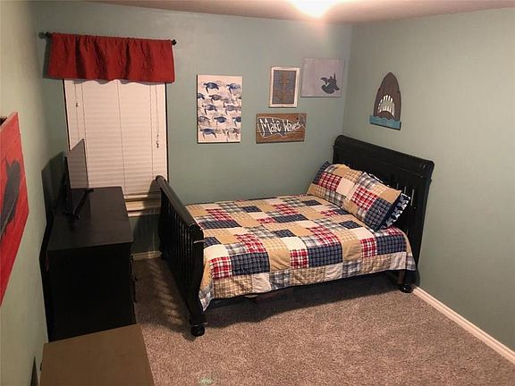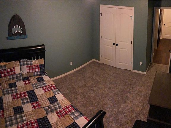 A beautifully landscaped walk-way welcomes you into this exceptionally well kept corner lot home with comforting front porch. Living area openly flows into dining and kitchen. Big windows in both dining and living area make for an airy, light living space. Kitchen has plenty of cabinets, counter space and snack bar with brand new Bosch dishwasher. Split bedroom plan with large master suite includes master bath with walk-in closet. Two bedrooms on separate side of home have good sized closets with center bath. Office has sunny window with glass doors for quiet space. New carpet installed 9/6/19 in all 3 bedrooms. Bamboo wood floors in living, dining, kitchen and office. Hugh covered patio along the entire back of home for your enjoyment. Corner lot affords a large open back yard with more than enough room for outdoor living in a big way. This is a one owner home that has a community park and stainless steel appliances. STORM SHELTER IN GARAGE.