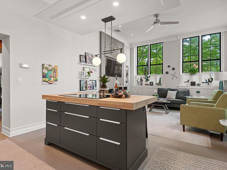 This stunning 1-bedroom condo offers you a piece of paradise in Lancaster. Located in the historic Clock Towers, this condo offers calm and beauty as soon as you step through the door. The openness of the main living space welcomes you into the kitchen, dining area, and living room. High ceilings and massive windows create a light-filled, airy place to gather. Cozy up by the electric fireplace and watch the snow fall on a winter’s evening. Or sip a glass of Pinot Grigio at the butcher block island while you watch dinner being prepared. The kitchen has soap stone countertops, stainless steel appliances, floating shelves, exposed brick, lovely light fixtures – to name just a few of the unique architectural highlights. Just off the kitchen is a walk-in pantry with a ladder to a loft area. Use the loft for storage, a reading nook, or playroom – it’s a unique, fun, versatile space. Also off the kitchen is a convenient half-bath with clean color palate and built-in shelving. What really makes this home a paradise is the bedroom. The full space is artfully sectioned into a sleeping area, office area, and bath area. The office area has built-in shelving, storage closet, and 2 walls full of windows. The sleeping area has more windows, plush carpet, and giant walk-in closet that also houses a laundry area. Framed and elevated is a gigantic soaker tub with its own light fixture and ambiance. The full-bath has a walk-in, rainwater shower, built-in shelving, and warm, natural light. This is a bedroom oasis you will never want to leave. Additional Clock Tower amenities are included with the condo, such as a community room, a fitness center, a sauna, and numerous gathering areas. Take a walk to Central Market for a long john donut, or take in a show at the Fulton Theater. This centrally-located condo is a must-see.