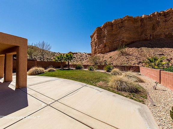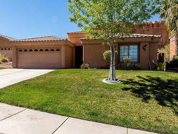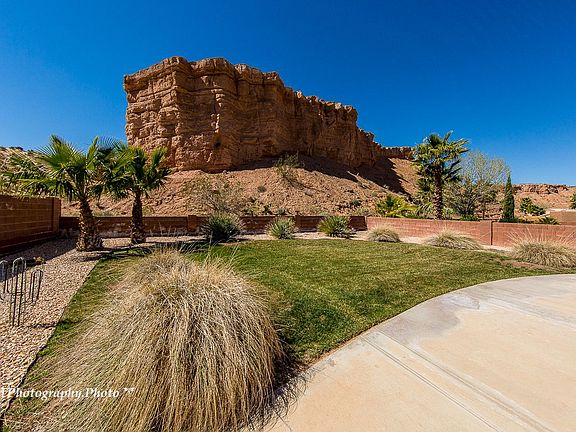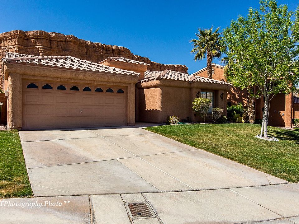This home is located in the gated community of Copper Bluff and in this oversized well maintained back yard you see where the neighborhood earned its name. Beautiful Bluff accentuates the green fenced landscaping. The drive up the street to your front door is equally as beautiful. Mature Trees! Inside, nice open Great Room area. Three Bedrooms and Two Bathrooms. Walking distance to the Mesquite Vistas Sports Center, Swimming Pool, Hot Tub, Workout Facility and Oasis Golf Club boasting two Golf Courses!