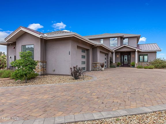 Stunning modern contemporary home in The Preserve at Prescott. Beautifully designed breathtaking home that captures the panoramic views and the city lights from both inside and out. This home sits on a very private 1.47 acres nestled between the beautiful majestic boulders surrounding the area. Live on the main floor and enjoy the great room space with floor to ceiling stone fireplace, master suite with designer walk in closet, huge walk in shower with rain head and hand held faucets, powder room and den/office with built in desks and patio access. The kitchen features Monogram appliances with a pot filler, wine refrigerator, expansive kitchen island and pantry. Every room in this house features large picture windows framing the views that surround this home.