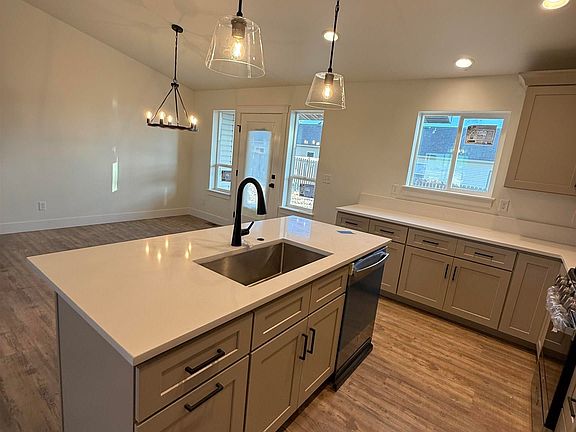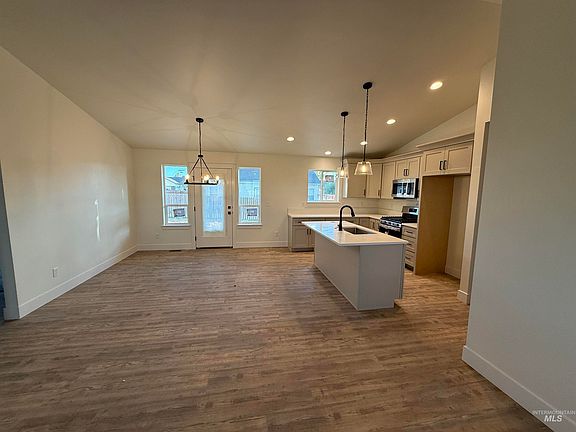 This beautifully designed residence, built by CA Homes, Parade Winner, Magic Valley Builder's Parade of Homes, 2023, 2024, 2025 and offers an open-concept design with vaulted ceilings, 4 bedrooms, 2 baths, and 1482 sqft., of living space. The home is thoughtfully appointed with quartz countertops, locally made soft-close cabinets, luxury vinyl plank flooring, and plush carpeting. The kitchen features a four-burner gas cooktop with a griddle and there is plenty of storage throughout the home. In addition, enjoy modern elegance from Pfister matte black plumbing fixtures throughout. The property is light and bright, and the 2-car garage is finished with baseboards! Bonus, front & rear sprinkler & Sod and vinyl fencing included. Discover your dream home in Stoney Ridge Subdivision, Jerome, Idaho! BTVAI
