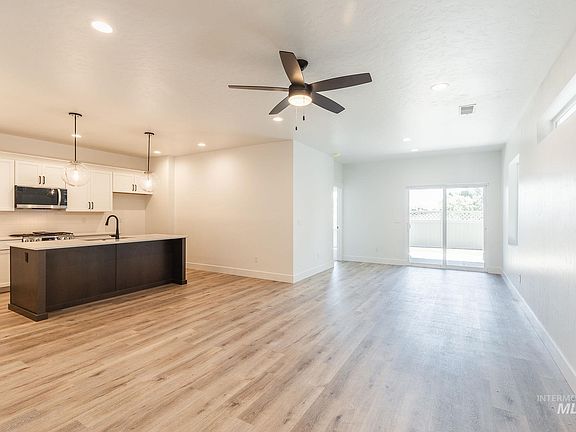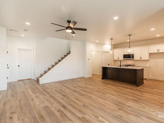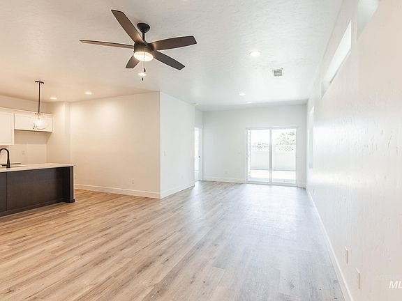 Large 2nd level Balcony & Master suite on main level, with Tile and quartz in kitchen and master bathroom. High quality finishes & spacious plan with open living area, large bedrooms and huge bonus space and abundant storage. Dual vanities in master and 2nd bath and a laundry room sink. Patio & fully fenced yard with bonus 7x9 storage area in the garage. Backs up to 5 Mile Creek and direct access to the 5 Mile Creek pathway. Centrally located close to downtown Meridian, the Village in a quiet neighborhood. Dual zone HVAC.
