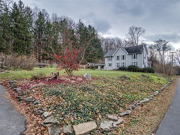 This Keuka Lake Farmhouse comes with 13ft of Frontage. This 4 bedroom and 1.5 bath home sits on over 2 acres of land with Gardens, lawns and fruit trees surrounding the home. Sit back and enjoy your own slice of heaven while taking in all the East side of Keuka Lake has to offer. Enjoy the country feel of this home along with panoramic views from your dock, this is Lake living. All this is located right in the heart of The Finger Lakes between Hammondsport and Penn Yan. Massive opportunity exists with this sprawling property which is enclosed by 2 picturesque creeks that just add to the beauty. The home has a warm and inviting feel, the rear family room the leads to a covered rear deck perfect for year-round gatherings. The Kitchen living room and dining room all have peaceful views from each window and they lead up to the 4 bedrooms and 1 full bath upstairs. This year-round home is awaiting your imagination and has everything you need to enjoy Keuka Lake. The homes sq footage is different to that of the Tax Data and the survey shows 2.2 acres of land.