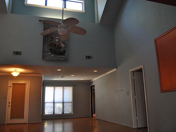 3BR/2BA with double garage, new garage door opener, huge fenced-in backyard, huge deck with a long porch swing, wood laminate and tile flooring, big stone fireplace, vaulted ceilings, and cute kitchen with new over the range microwave. Roof, water heater, central heat and air, and gutters replaced in 2014. Information is deemed reliable, but is not guaranteed.
