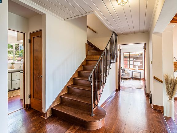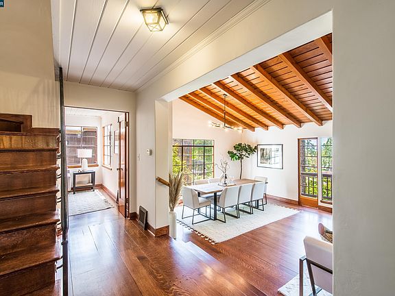 Enjoy the Berkeley lifestyle in this charming, spacious home located in the coveted Cragmont neighborhood in the Berkeley Hills. Walk up the Billie Jean pathway from your oversized two car garage to this inviting Spanish Mediterranean sanctuary. The main house features 2 large bedrooms (each with a dedicated office), 1.5 bathrooms, gleaming hardwood floors, a living & dining room w/wood burning fireplace, a separate family room, a sunny breakfast nook overlooking the backyard, & a well maintained kitchen with plenty of cabinet space & a recently restored O’Keefe & Merritt gas range/oven. Amazing bay and city views from most rooms in the house provide a nice backdrop while you relax in this private retreat. A separate in-law studio w/kitchenette & full bath is located on the lower level. This space is perfect for a separate home office, caretaker unit or additional source of income. Situated on 0.14 acre lot, the private backyard is perfect for entertaining or relaxing in your own tranquil oasis w/rose gardens, lawn area & 2 outdoor sheds for extra storage or workshop space. Just moments from Cragmont Elementary, Cal, parks, & public transit, this home is everything you want in the Berkeley Hills and more!