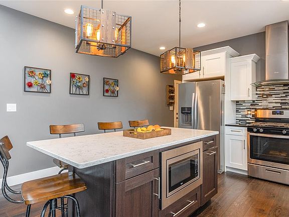 Amazing great room that features 15 foot ceilings, abundance of natural light, Stone Fireplace with built-ins, Gourmet Kitchen with island and breakfast bar, slider to a great yard with a spacious Deck and custom built Patio to enjoy summer evenings, Professionally landscaped yard, Master suite with tray ceiling, french doors, double sink vanity, walk-in shower and closet, in the Lower Level you will find daylight windows, Rec Room with Wet Bar and a 2nd stone Fireplace, area wired for Theater Room, 2 additional Bedrooms or Office, 2 storage areas, front Porch to enjoy your morning coffee, don't miss this Extraordinary Home.