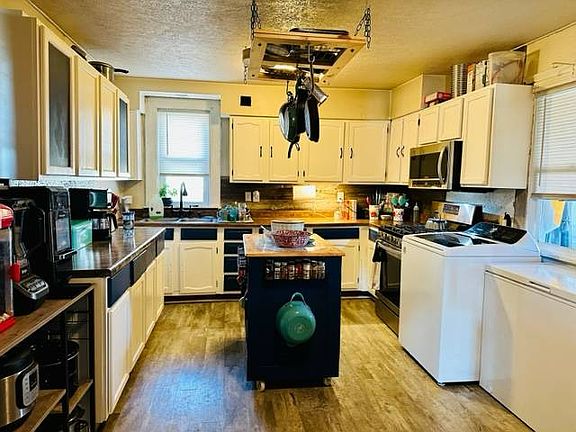 Nicely redone 2 bedroom 1 bath home. Siding and almost all windows were replaced in 2019, roof was replaced in 2021, and furnace in 2022. New waterproof laminate flooring in living and dining rooms, with new luxury vinyl planking in bedrooms. The refrigerator and gas stove are 3 years old, movable kitchen island stays. New shed, fenced in yard with a fenced in area for an RV.