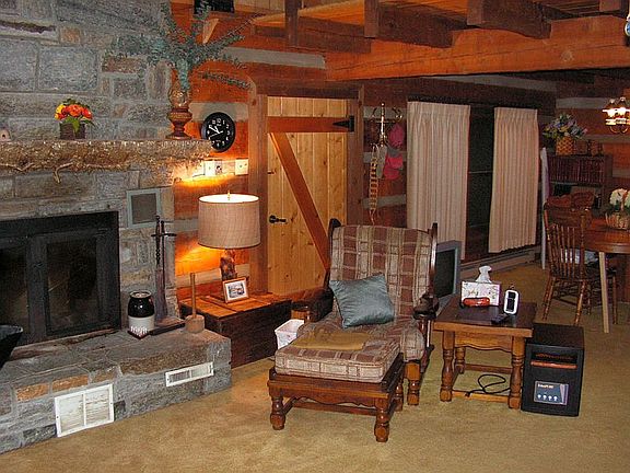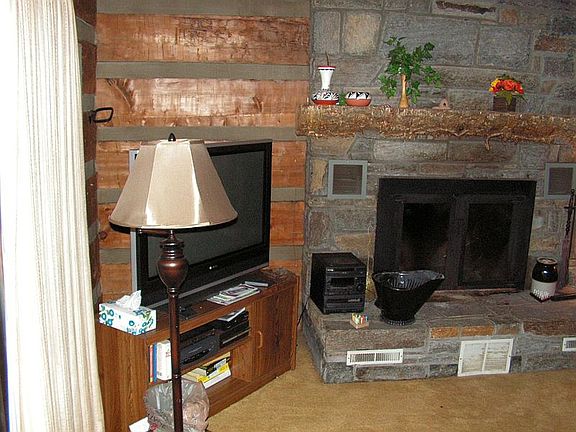 Spacious 3BR/2.5BA log home hidden away in a private wooded setting with magical mountain views. The exterior details including squared logs with chinking, feather board siding in the eaves, green metal roof, and an expansive covered deck on the view side add to the rustic charm. Inside one finds an open Great Room with a massive stone fireplace with raised hearth and log mantel. The Dining Area is generous in size and open to the Kitchen with abundant cabinetry, counter space, and large eating counter. A large Family Room with stone fireplace is located on the walk-out lower level.