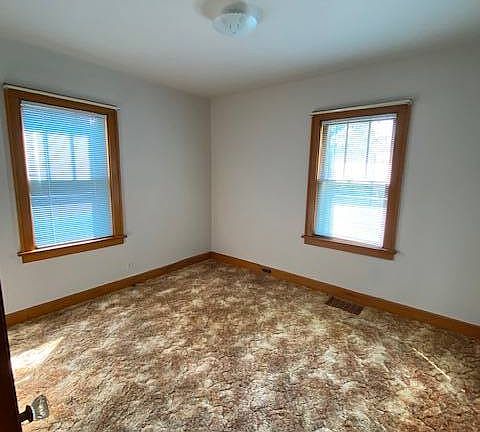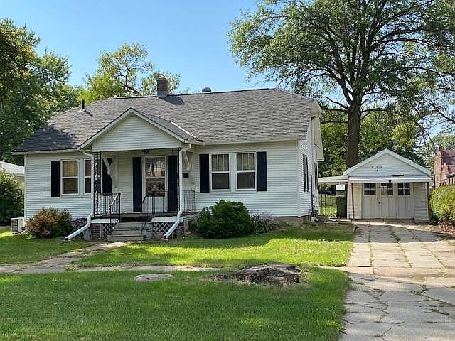 This charming 2-bedroom has been soooo...well-maintained. In this separate kitchen there is even room for a small center island. The open living and dining rooms (dining room has built-in storage) have windows that provide great sunlight! Two bedrooms with the main bath between......tons of storage in the bathroom and hallway. Original glass knobs are still on the upper level doors. Full basement to use as you choose. Small backyard, covered patio and detached garage. If what's under the kitchen carpet is any indication......the original wood floors might be beautiful throughout!