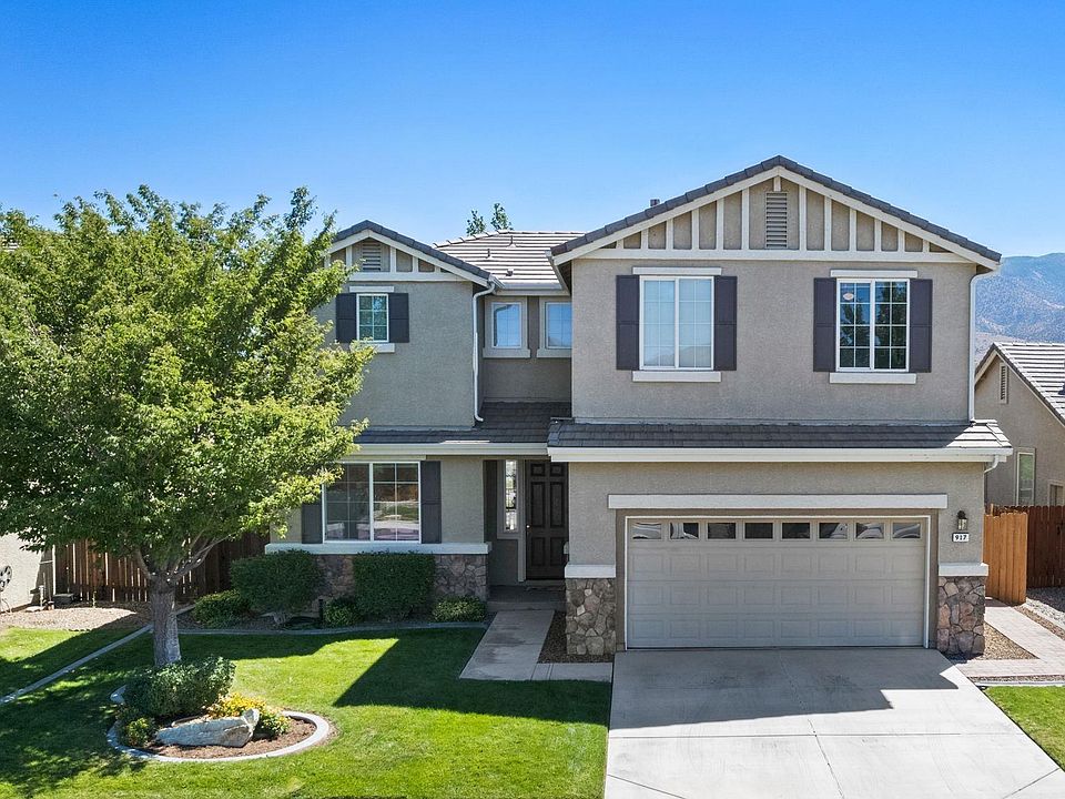 Priced to Sell Now! Gorgeous Mountain, valley & golf VIEWS! The second story deck is the place to be! The lower deck & paver patio add to the enjoyment of the backyard. Mature landscaping front & back! This 2061 sf home boasts 3 bedrooms + a LOFT area, 2 1/2 baths, library nook, spacious kitchen w/plenty of cabinets + panty & breakfast bar & nook. The great room is open to the kitchen & has high ceilings, ceiling fan + gas fireplace. The master bedroom has a large walk- in closet, double vanities, separate shower + garden tub. Great floorplan, great location- this home is ready to move in. Call today