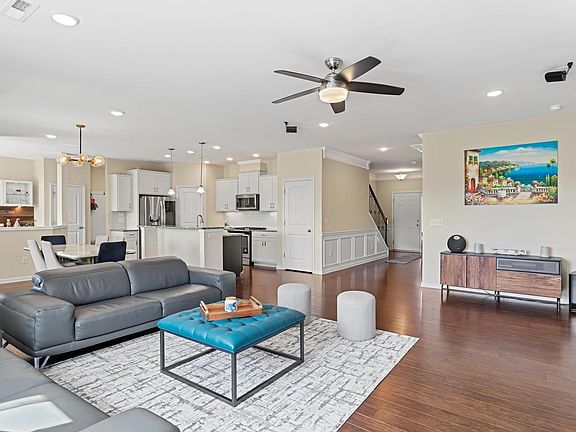 Well maintained North facing home in Oaks@Searsfarm. Formal living with ceiling fan, Open Kitchen with 42" white cabinets, Island, Granite countertops, Tile Backsplash & SS appliances. 1st floor Guest Bedroom with Full Bathroom. Dining & Sunroom area with a nook overlooking a private backyard. 5inch Engineered Hardwood flooring, elegant oak treads stairwell with open cast iron balusters railing. Kitchen drawers with glide out shelving. Custom cabinets in Office area. Deck with scenic backyard views. Second floor has Master Bedroom/Suite, Princess Suite with attached bath, and 2 more secondary bedrooms. Walk-In closet with custom cabinets. Central location, close to dining, shopping, RTP, Airport and Highways. Must see !