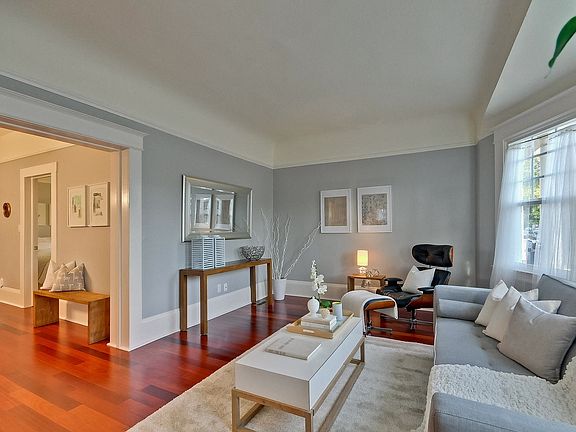 Bright and airy flat features hardwood floors, moldings, and many designer upgrades. Kitchen has a gas stove, refrigerator, dish washer, disposal and plenty of storage space. Amenities include an in unit washer and dryer, one car garage and a shared outdoor space perfect for entertaining. Available now, pet friendly! Tenant and owner split rental fee, tenant pays utilities