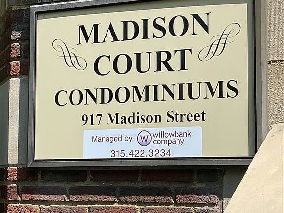 Welcome to Madison Court. This corner unit is a 1 bedroom, 1 bath unit with family/dining room combination. Galley kitchen has plenty of cabinets and a storage/pantry area. Some updates are in need so property is priced accordingly. Perfect location and within walking distance to SU and hospitals. Assigned parking spot is secure behind an electronic gate. Laundry center on premises as well as fitness area and equipment.