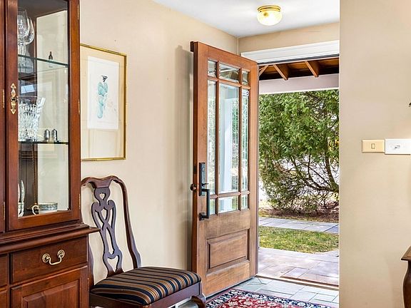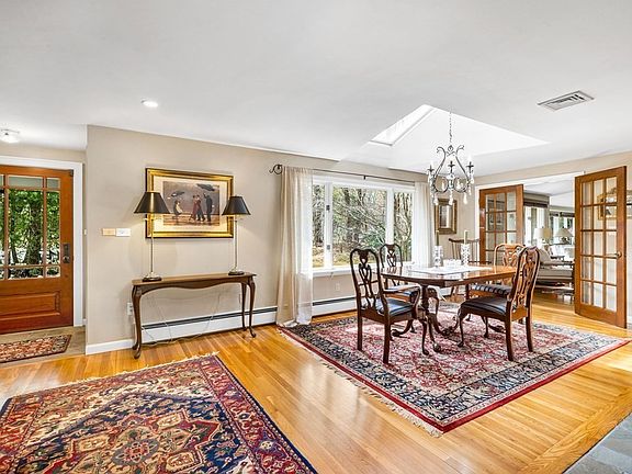 Move-in ready ! Pristine 3 bedroom sprawling Ranch set on just over an acre! Wonderful curb appeal & privacy w/ plenty of trees & separation between neighboring homes in a very desirable location along historic Main Street. Custom front door sets the stage to a fabulous open floor plan from the inviting entryway. Completely renovated w/ stunning finishes & impeccable design. Bright, sunny w/ a spacious open feel provides for endless entertaining opportunities. Large dining room perfect for family gatherings w/ unique corner bricked fireplace & enormous LR w/ adjacent office. Country kitchen w/ a breakfast area, center island & newer Bosch appliances. Relax in the sun room featuring a Yotul gas stove surrounded by windows & a soaring ceiling covered in white Ship Lap w/ a slider to a private deck. Luxurious primary BR w/ spa like ensuite bath, gorgeous tiled walk in shower and jacuzzi tub. 2 wonderful size guest bedrooms & 2 Car garage with plenty of additional parking spaces.