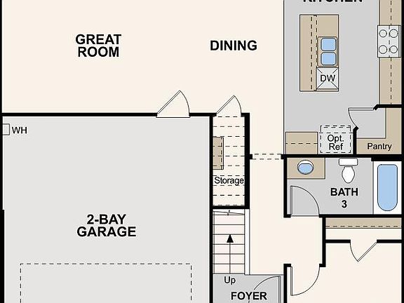 The two-story Marigold plan offers abundant space in an inviting layout. On the main floor, an expansive kitchen—with a center island and corner pantry—flows into a spacious open-concept dining and great room area. Additional main-floor highlights include a convenient downstairs bedroom directly off the foyer. Upstairs, three more secondary bedrooms—one with a walk-in closet—share a full hall bath. You'll also enjoy a lavish primary suite with an attached bath and walk-in closet.
