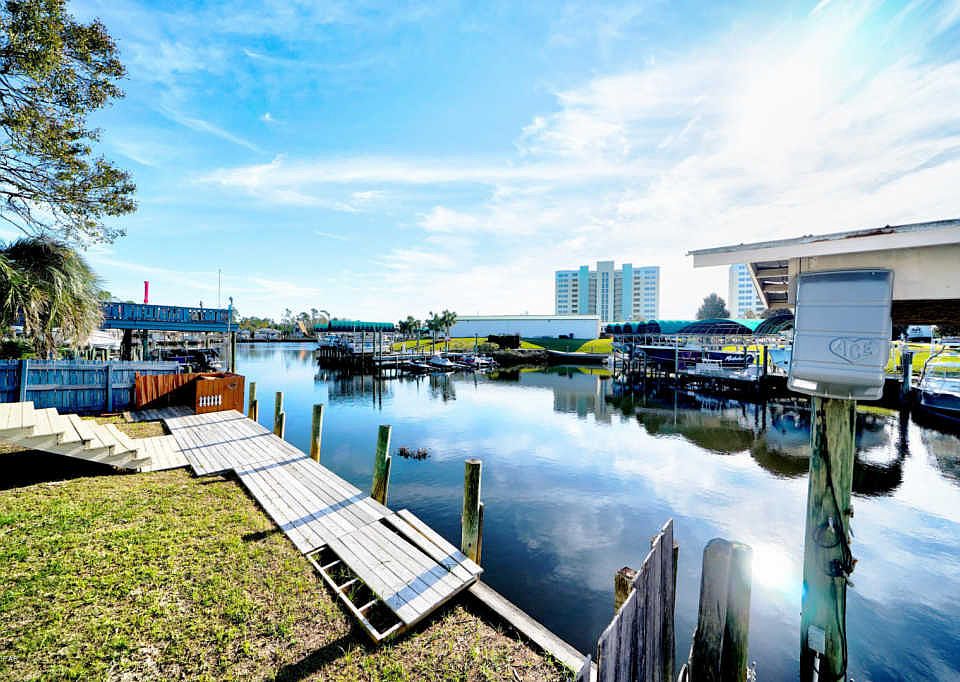 Drop the boat in the water and be to shell island in minutes! This home had minimum storm damage. Needs roof patch, fence and deck repair. Nicely laid out split floor plan. The spacious 2/2 could be the ultimate beach get away with navigable water access. Needs paint and carpet and a little TLC.