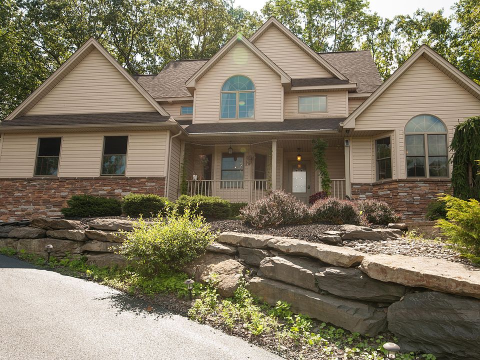 DISTINCTIVE HOME COLLECTION!! You can have it all! This CUSTOM BUILT, like new home is located in the Premier, Twin Lake Estates in the Pocono's. Hardwood floors throughout, 5 Bedrooms which includes an In-law Suite with full bath, Finished Basement with Bar, Office and Living room, see through Gas Fireplace from Vaulted Great room into Kitchen and Hearth room, first floor Master bedroom with tile shower and garden tub, full walk up Attic and .......GEOTHERMAL HEATING AND COOLING! This super Energy Efficient home was built by the highest awarded builder in the Poconos