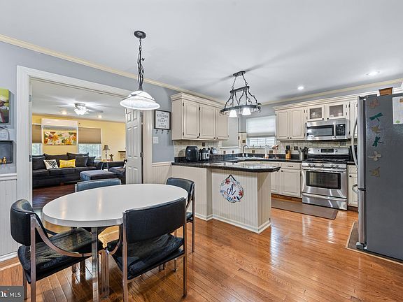 Great location in rarely offerd and sought after Meadow Glen. This attractive center hall colonial has lots of curb appeal. You will enter the home and be greeted buy a spacious two story foyer with the living room to the left and dining room to the right. As you proceed you will find the family room to the left and the kitchen to the right, smartly devided by a gorgeous breakfast bar. Hardwood floors and ample recessed lighting throughout the home. The kitchen features granite counters, center granite Island, and stainless-steel appliances. On the first floor there is a powder room and a laundry room that exits to the two car garage. Beyond the kitchen you will find an addition providing for added living space with a first floor bedroom, full bath, kitchen and gas firelpace. This space allows the flexibility to be used an au pair/in-law suite or an awesome entertainment area with convenient first floor living and is heated and cooled by a separate mini-slpit system. The upstairs has a nicely appointed hall bath, four spacious bedrooms including the main suite with en-suite bathroom, two walk-in closets and cathedral ceiling. The finished basement has a large entertainment area with a built in wet bar for lots of fun and a work area with workbench included and an additional storeage space with easy access to the mechanicals. There is a spacious, fenced rear yard which can be accessed from the rear sliding glass doors onto an elegant outdoor living/entertainment hardscaped patio. Other items of interest include newer roof (2018), heater (2020), air conditioning (2020), ceiling fans in all bedrooms and most other rooms, rubberized floor in two car garage, garden shed, water softener.