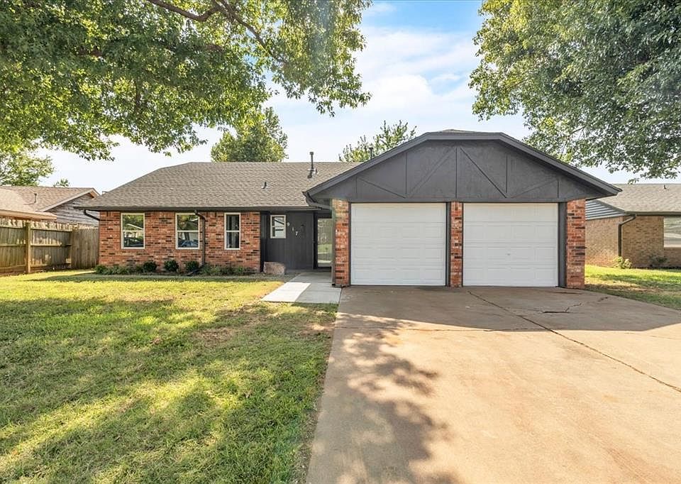 You will want to see this gem in Edmond! Tons of updates throughout not limited to paint inside and out, new faucets, granite throughout, new "wood-like" tile, new carpet, new stove, new light fixtures, new interior doors, new trim, new hardware, new vanities, new cabinet doors, newer windows and more! Covered front porch and true entry way welcome you into the home and then off to the kitchen or living room. Living room is light and bright plus it has nice tiled "wood-like" floors, a brick fireplace and a newer sliding door to the back patio. Kitchen is partially open to the living room with granite, stainless steel appliances(brand new stove/oven will be installed soon), new sink and faucet, new backsplash painted cabinetry, and dinette with picturesque window overlooking the back yard. Main suite has a ceiling fan and its own bathroom with new cabinetry and a walk in shower. Secondary bedrooms have brand new carpet, new ceiling fans, and freshly painted walls and trim. Hall bath has great storage, a large vanity, and a tub/shower. Covered patio and fenced in backyard out back. Air ducts have been cleaned in the last 6 months. Don't miss out on this great opportunity!