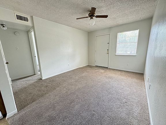 Welcome to this comfortable 2-bedroom, 1-bath apartment located on the ground floor of a fourplex. The home features cozy carpet in the living areas and durable vinyl flooring in the kitchen and bath. Enjoy a functional kitchen equipped with traditional white appliances and ample cabinet space. Designed for comfort and convenience, this apartment offers practical living located within easy access to HWY 190. Units A & B are located downstairs, while C & D are upstairs units.