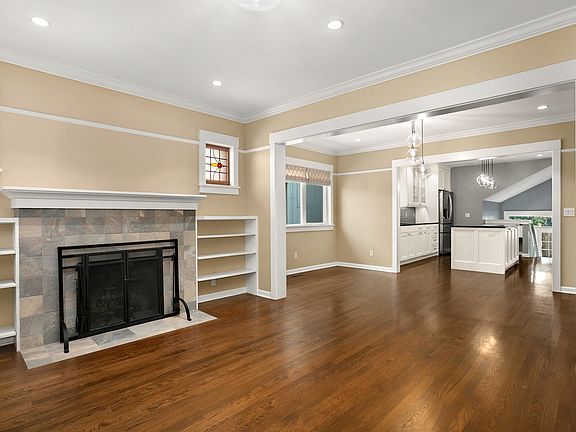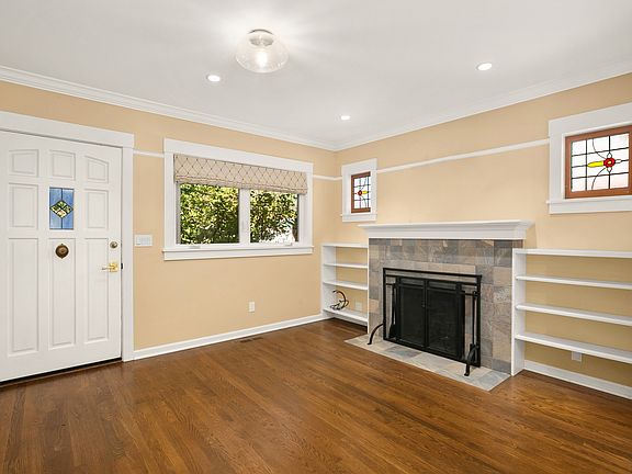 Stunning interiors with gorgeous wood floors, a tiled fireplace, built-ins, and sophisticated finishes throughout. Chef's dream kitchen custom cabinetry, sleek counters, modern appliances, and an open layout ideal for entertaining