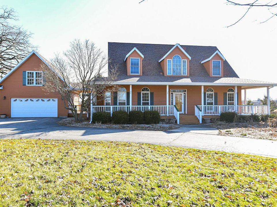 SPACIOUS 3 BEDROOM 3.5 BATH MODERN FARMHOUSE on 2+ ACRES in DOVER/UNION GROVE with WALK OUT LOWER LEVEL. This beautiful home with wrap around porch showcases an open floorplan surrounding a dramatic great room full of natural light beaming through multiple windows, wood burning fireplace & access to the large, elevated deck overlooking the rear of the property. Eat in kitchen with stainless appliances & formal dining room on one side while the main level primary suite with walk-in closet, fireplace and private bath with jet tub & step-in shower is on the other. Upstairs two 13x20 bedrooms frame the great room connected by an overlooking balcony. Fully finished walk-out lower level has 30x44 Rec Room & full bath. Detached 2+car garage with 50amp RV Service & walk-up attic storage complete.
