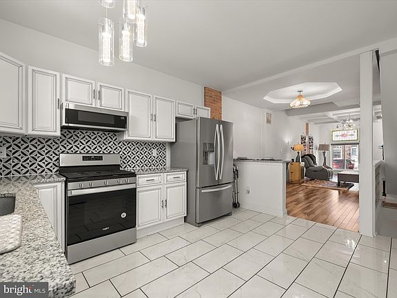 Welcome to your New Home where the magic of City urban living meets modern luxury. Step into a completed renovated 2-bedroom, 2-bathroom rowhome offering 2 bonus rooms (functional for a media room and home office) nestled in the vibrant heart of Baltimore City adjacent to John Hopkins Hospital. You'll find the home in pristine condition with exposed brick feature throughout, tiger wood flooring on the first level and a seamless open-concept design that invites you directly into the living room, featuring a beautiful, coffered ceiling, contemporary lighting fixtures, 4 recessed built-in picture art inserts, 2 lovely stained-glass transoms above the entrance door and oversized, front double window. Nestled in between the living room and the kitchen is a dining area with custom tray ceiling and lighting. Rounding off the main level the stunning new kitchen adored with beautiful granite countertops, black and white ceramic tile backsplash design, with white cabinets offering soft closure drawers, elongated ceramic tile flooring, built in microwave, 4 burner gas oven range, refrigerator w/ice maker, and gleaming stainless-steel appliances. There is a conveniently located rear security door from the kitchen to the rear patio fully fenced yard. Enjoy the custom-built ascending staircase with decorative posts, handrails and wood and iron balusters, leading to the beautiful upper level featuring a primary suite accented with a modern ceiling fan, glass-block feature wall allowing more natural light. The ascending wall boasts picture cut outs to feature artwork or collectibles. Escape to an oasis with the newly renovated and stunning full bathroom offering marble flooring and beautiful marble and elongated ceramic tilework throughout. The lower level is a completely finished basement with 2 bonus rooms with two closets for overnight guests, a rear security entrance door, stunning full bathroom with shower/tub combo. A washer and dryer are nestled in the laundry area and Extra storage is offered under the staircase. Enjoy the stunning lighting fixtures throughout the home accenting the modern design look. Private back yard for entertaining and BBQ's. Become part of an emerging and revitalizing community. Minutes from shops, restaurants, parks and downtown Baltimore. No Parking in front of the building Tuesday and Friday 8am-11am for street cleaning. If violated, vehicles will be towed. On the opposite side of the street, No Parking Thursday 8am-11am for street cleaning. If violated, vehicles will be towed. Head-In Angle Parking Only.  Seller is willing to hold financing at 9% for 3 years to buyers who can place at least 20% down. Buyers must then refinance after the 3 years. Terms will be negotiated according to the offer.