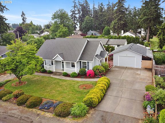 OPEN HOUSE Sunday 5/18 @ 12-2pm! This adorable ONE LEVEL home is move-in ready!! Situated just steps from the home on this 1/4 acre lot, you will love the 20'x 30' shop. It has concrete floors, auto roll up door, 220V, 2024 roof and TONS of additional covered storage rooms off the side & back. Shop was also freshly painted inside & out this week! The home has an open concept floorplan also with fresh interior & exterior paint. Brand new LVP flooring throughout (no carpet!). Primary bedroom is located on the backside of the home with attached bathroom and convenient WI-shower. Enjoy the sweet backyard, the 200sf covered patio & garden areas. In addition to the large driveway (room for multiple vehicles), there is a second 36' driveway - perfect for your RV or boat! There will be a new 6’ fence prior to closing along that side as well! Just 2 blocks to the incredible Maple Street Park or Clack Co Fairgrounds (BONUS: Entry tickets come free to this address)! *Temporary road construction is bringing brand new city sewer, paved street & sidewalks SOON! No HOA. W/D/all appliances included.