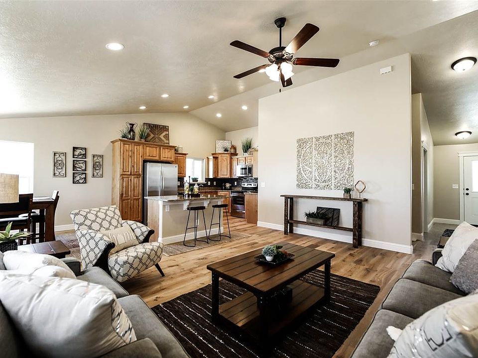 The Cedar home in Spring Creek, NV offers an open floor plan design with a large great room, kitchen with island and an executive master suite. This 3 bed 2 bath home has an option to add a bonus room above the garage for an extra bedroom & family room. A large basement option is also available adding 3 more bedrooms, a 3rd bath, and a large 2nd family room Pictures are of a similar Cedar home.