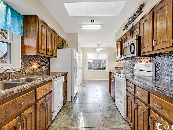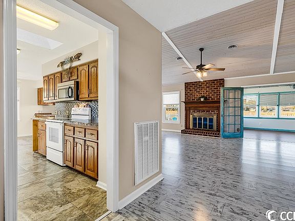 Welcome to this beautiful 3 bedroom, 2 bath all brick home located in the Deerfield Estates community in Surfside Beach, which is only a golf cart ride to the ocean! Upon entering this home through the foyer, you will immediately notice the spacious living room with vaulted ceilings and a masonry fireplace. This home features a large dining room, breakfast nook, new windows, a large Carolina room, and LVP flooring throughout. The owner's suite has a large walk-in closet with an adorable ensuite. Let's not forget the large patio where you can sit and enjoy your morning coffee while faintly hearing the waves crashing in the distance. This home is close to shopping, entertainment, restaurants, beaches, and all the Grand Strand offers! You don't want to miss this beautiful home that is situated in a prime location!