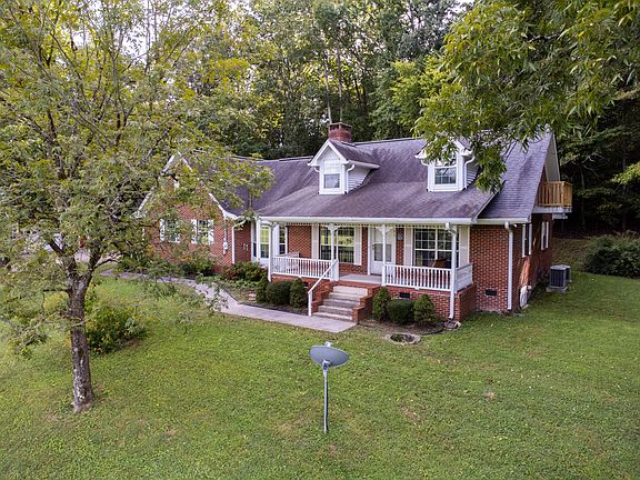 Seller offering 1 year Home Warranty with the purchase!!! AT&T Fiber Optic internet available at the road. Handsome brick farmhouse overlooking a magnificent pasture and pond with lush trees and stunning mountain views. Welcome home! The home is move in ready sold by non- smokers with no pets. The vast front porch with ceiling fans is sure to keep you cool while you rock peacefully and enjoy the view. The front door opens to a lovely Great Room with a brick gas fireplace and contrasting white mantle. Stepping through the glass door into the cozy breakfast nook with parquet oak floors in pristine condition and three huge bay windows letting in luminous natural light to your kitchen. The kitchen features new counters, sink, faucet, ample storage with 2 Lazy Susan corner cabinets, and an attached formal dinning room directly off the kitchen. The Master on the main level features a vanity sink and ensuite master bath. Upstairs you're sure to be blown away by the amount of storage. Full bath upstairs as well between the 2nd bedroom with private balcony and the massive bonus room/3rd bedroom. The bonus is large enough to have the potential to be used as a 4th bedroom. This two level farmhouse has so much to offer and also features a two car garage, two outbuildings and one massive 1100 sq ft detached garage with office and loft storage. Featuring an extra tall garage door for RV storage and the ceiling is high enough to accommodate a car lift! A mechanics dream come true! The garden plot has been mowed and is ready for your fall garden. Come see this property soon! You'll be glad you did. AT&T Fiber Optic internet available at the road.