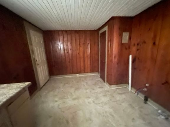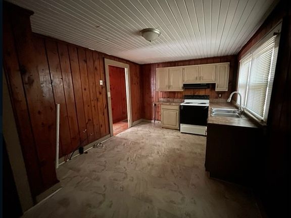 3 bed, 1 bath house with knotty pine walls, partial wood floors and updated kitchen. Central Heat. 2 window units for AC