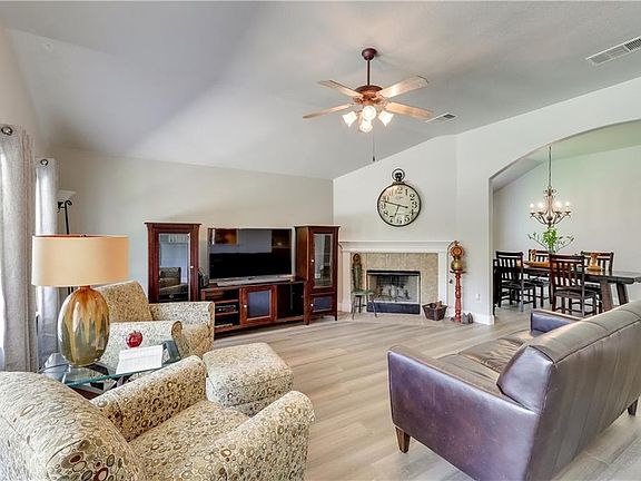 Highland Park North. Stately Lennar Homes built in 2005. Meticulously maintained home with an abundance of Natural Light. Open kitchen w/tile backsplash, stainless steel appliances, center-island. Soft gray tones, stately architectural design niches, arched entryways, rounded corners, wide hallways, antique brass fixtures, spacious rooms, wood floors, and fireplace. Office and formal dining. Master spa w/separate shower. Spacious yard with large covered patio. Professional landscaping, sprinkler system. Walking/jogging trails, pool, parks, and community playground.
