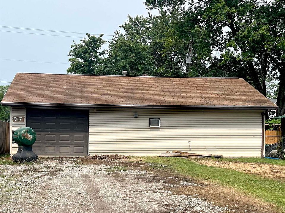 Need a work shop? This is perfect for you! This one car garage sits on a large lot with an over sized driveway, spacious shed in rear, and lots of opportunity! This building can be used as a work shop, extra storage, or even an apartment with a little work! On the inside you will find that it is already plumbed for a bathroom, has a washer and dryer hookup, AC conduit, wiring for HVAC, there are two wall units one for AC and the other for AC and heat. There is lots of storage space in the fully insulated attic. New panel and meter 2 years ago.