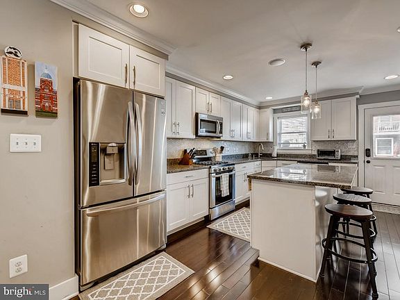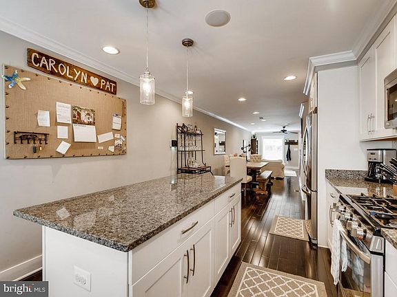 - Kitchen Island, Window Treatments, Recessed Lighting, Eat-in Kitchen, Crown Molding, Open Floorplan, Wood Floors, Upgraded Countertops, Kitchen - Gourmet, Combination Kitchen/Dining, Primary Bath(s)