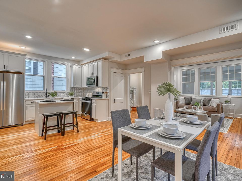 Avery Properties presents another superb renovation. The quaint arched front porch greets you before entering into the large foyer that flows to the spacious living room w/brick decorative FP. Just off the living room is the perfect home office space offering tons of natural light to enter this space and flow into the living room. The expansive kitchen boasts, shaker cabinets, SS appliances, island/breakfast bar& large pantry. There is a full bath just off the dining room & door leads to side driveway entrance & stairs to the finished lower level. Upper level offers 3 BRs w/ expansive closets & 1 full bath. Finished lower level rec room has a full bath & separate laundry room/utility closet/storage. Refinished original hardwood floors on main & upper level. 1 car detached garage/storage shed & multi car driveway & LEVEL rear yard!