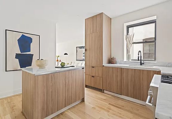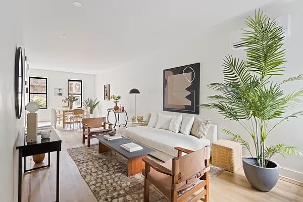 Welcome to 917 Saint Marks Avenue, a modern collection of flawless condominiums situated in a gorgeously maintained prewar building. These 4 carefully crafted boutique homes feature expansive floor through layouts and all new modern amenities. Unit 2F at 917 Saint Marks Avenue is bright and airy with 3 bedrooms and 2 full bathrooms. Just one flight up, enter into your sprawling 31 foot long living/dining area flooded with southern light. Recessed lighting and gorgeous white oak hardwood floors create a warm and comfortable home. Off the dining area is a great windowed home office or functional 3rd bedroom. The windowed kitchen is beautifully designed with custom Italkraft cabinetry, white marble countertops and a Bosch appliance package. Master bedroom is privately tucked away and has treetop views and two large closets. The master en suite bathroom is spacious and offers a deep soaking tub. Unit 2F comes with a private, deeded 53 sq ft storage room in the basement. Crown Heights is home to a variety of fantastic shopping, recreation and dining options including Bar Corvo, Alans Bakery and Punchline Juice Bar. Brower and St. Johns Parks are close to home, while magnificent Prospect Park is only a short trip away. The Brooklyn Children's Museum is down the street and transportation around the neighborhood or to Manhattan is provided by the A & C trains at Kingston- Throop Avenues, the 3 train at Kingston Avenue and the 4 train via Eastern Parkway. The complete offering terms are available in an offering plan from sponsor. File No. CD20-0026. Sponsor: Saint Marks 917 LLC - 853 Broadway New York, NY 10003. Equal Housing Opportunity.