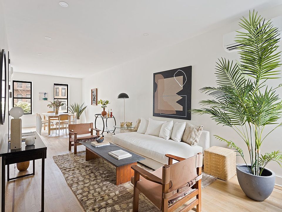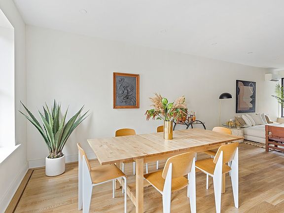 Unit 3 at 917 Saint Marks Avenue is a bright and airy 3 bedroom and 2 bathroom floor through apartment in a prewar townhouse with modern amenities, including ductless heating/cooling units, dishwasher, and washer/dryer combo. A sprawling 31 foot long living/dining area flooded with southern light is perfect for cozy nights in or entertaining family and friends. Off the living area is a windowed bonus room for a home office or guest room. Nestled between the public living area and the private bedroom wing is a gorgeous windowed kitchen, beautifully designed with custom Italkraft cabinetry, white marble countertops and a Bosch appliance package. The home's additional bedrooms are privately tucked away in the rear of the apartment. The spacious primary bedroom boasts two large closets and beautiful tree-top views. The en suite bathroom offers a deep soaking tub. A 53 sq ft storage room in the basement is included in the rent. Crown Heights is home to a variety of fantastic dining and recreation options. Brower Park and St. Johns Park, which boasts an indoor pool, are close to home, while the historic Prospect Park is only a short trip away. The Brooklyn Children's Museum and Socceroof are down the street and transportation around the neighborhood or to Manhattan is provided by the A & C trains at Kingston-Throop Avenues, the 3 train at Kingston Avenue and the 4 train via Eastern Parkway. Pets considered on a case by case basis. *Photos are of the unit when it was professionally staged.