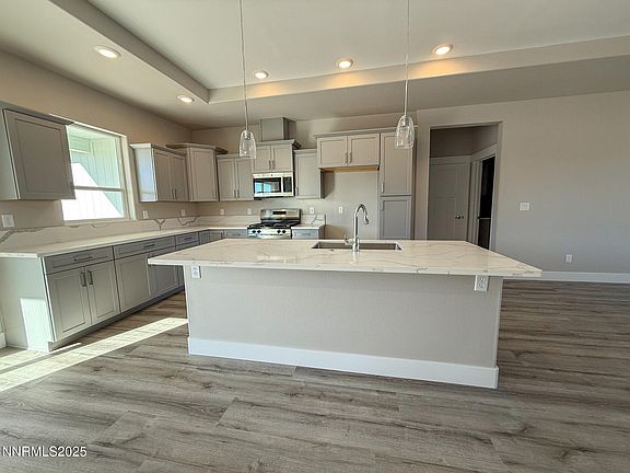 Room for rv parkingQuartz countertopsLuxury finishesLarge laundry roomOversized three-car tandem garagePrivate primary suiteCorner lot