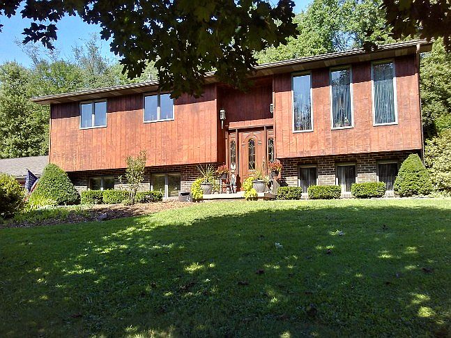 Must see! Private setting on 1.5 acres in the South Butler School District. Cedar and brick splint entry home. One owner. Home has vaulted ceilings in the living room, 3 bedrooms upstairs and 1 & 1/2 baths. Updated kitchen with island, knotty alder cabinets and stainless steel appliances. Newly renovated bathroom off the master with custom built Amish cabinetry, granite countertops, double sinks and tile shower with bathtub. Laundry room and half bath are located directly off the kitchen. Finished basement with bar and fireplace. An office space and 4th bedroom are also located downstairs. Attached spacious 2 car garage with utility sink. A 15x30 above ground swimming pool with large deck is located off the back patio. A cedar shed with concrete flooring for extra storage is located in the backyard. Concrete driveway. Central air conditioning and oil heat. Call 724-352-2559. Showing by appointment only.