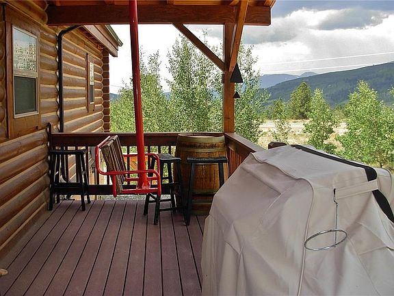 Fully furnished full round log home has been converted to natural gas and features AMAZING VIEWS and is in immaculate condition. Hardwood floors, SS appliances, granite countertops, breakfast bar, stone wood fireplace with split log mantel & a raised hearth, split log staircase, loft & an OS 1 car heated garage. Outside features a hot tub, TREX decking on a total of 5 decks including a covered grilling deck off the kitchen & a circle drive. Logs have been completely re-chinked. 35 mins to Breck!