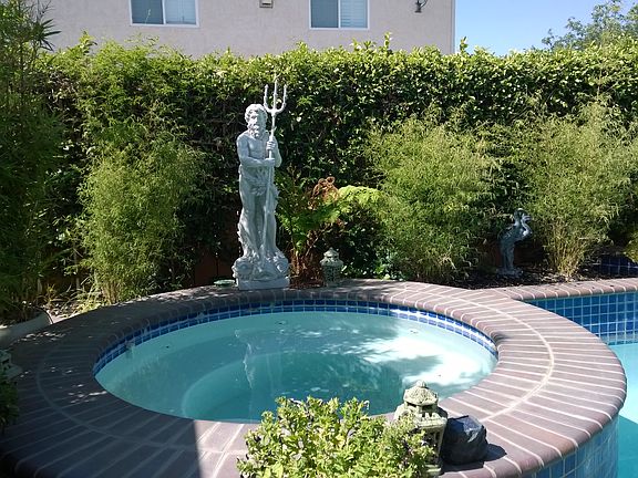 Located in a quiet neighborhood, this home is perfect inside and out. Are you looking for a great kitchen? Gorgeous kitchen details include spacious painted cabinets, an island, double ovens, and outside access. The kitchen opens up to a living room with high ceilings, a fireplace, and built-in bookshelves. Separate downstairs bedroom and full bath, perfect in law unit. The backyard with sparkling pool and spa, built-in bar and grill, and covered patio make this space perfect for celebrating