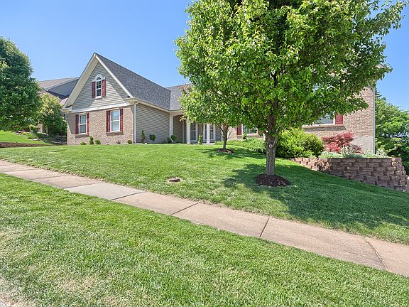 A magnificent ranch home in popular Southern Hills with great curb appeal, especially the deep front porch. A great feature for welcoming guests, chilling and seasonal decorations. You’ll notice multiple vaulted ceilings including reverse vaults in so many rooms plus architectural details galore. An open floor plan with columns and niches, a stone floor-to-ceiling fireplace in the hearth room, wonderful bay windows in several rooms, gleaming wood floors and newer carpeting add sizzle. How could you pass up the kitchen with a vaulted ceiling, granite counters, stainless appliances, two pantries, a butler pantry and a breakfast room with a bay window? The arched entry from this room looks into the hearth room. Simply beautiful! A master bedroom suite features a full bath with a whirlpool tub, vaulted ceilings, room for oversize furniture, a walk-in closet and a bay window. A very nice retreat for the homeowner. Two additional main floor bedrooms share a Jack-n-Jill bath which has been freshly renovated. A conveniently located powder room and a laundry room with a laundry tub off the garage entry makes it convenient to clean up after tinkering in the yard or in the garage. A finished walkout lower level affords plenty of room for entertaining and watching all the great sports venues we have in St. Louis. A media room, family room, rec rooms and a large bedroom and separate bath, plus a walk-out to the yard and patio complete the package. A large, level backyard backs to trees for privacy. The owners are also replacing the current deck with a redwood cedar one including metal spindles. Life in The Legends is great! Country club living with a challenging course for golfers, pools, tennis, volleyball, and pickle ball courts, a playground and many community events spell F-U-N. Plus we are part of the awarding winning Rockwood School District and Eureka has many private schools too. An easy commute on I-44 or 109 make this location desirable for many who want small town living with great amenities to a larger city just minutes away. Welcome home!
